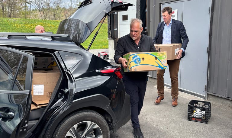 Loading goods from Hannaford with our Congressman Josh Reilly